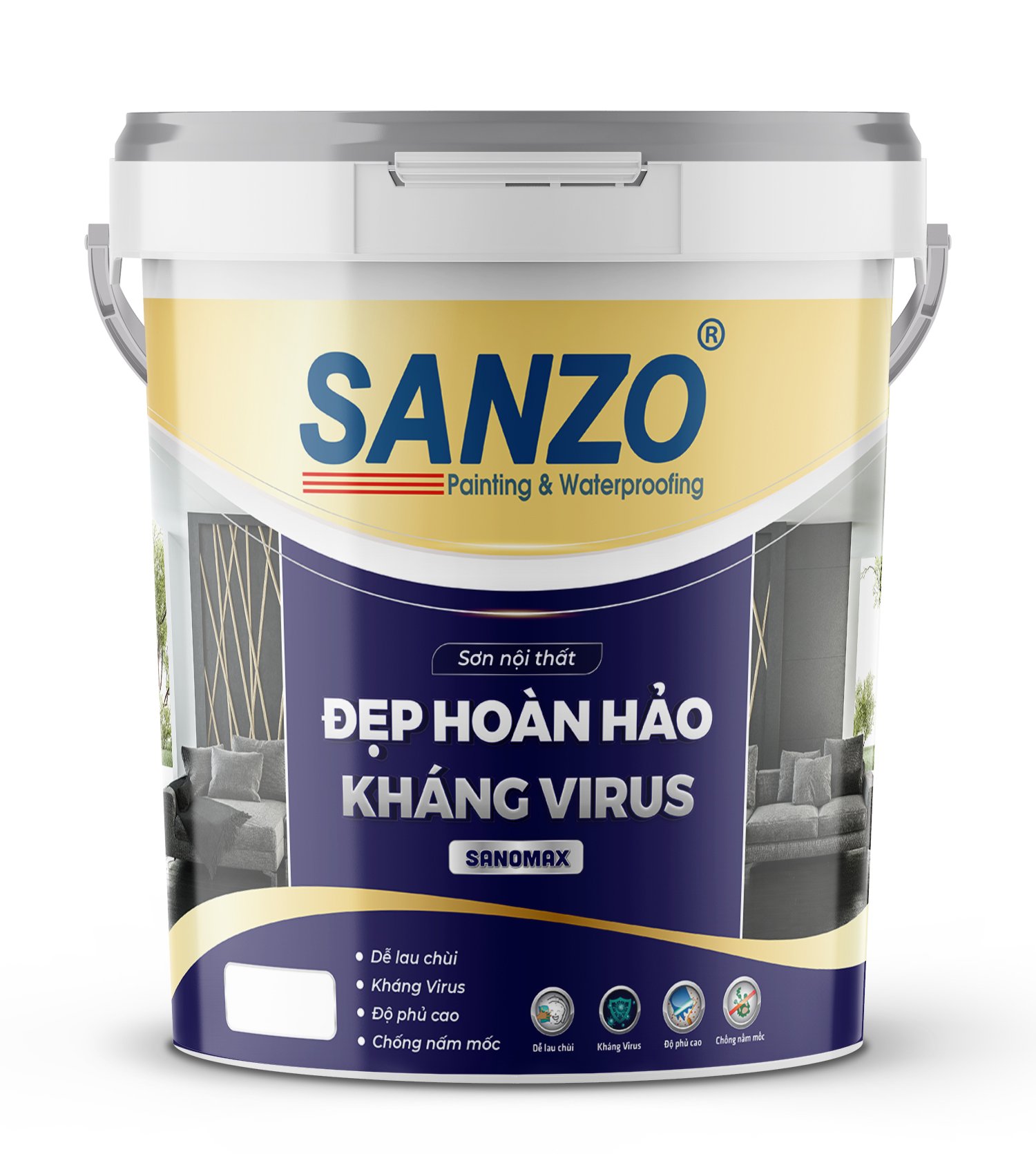 - 2 Lớp sơn phủ Sanomax nội thất cao cấp